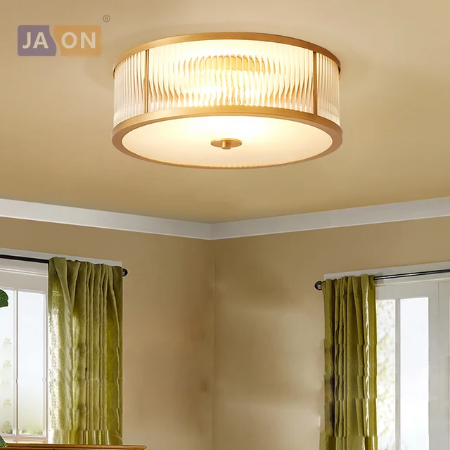 Big Sale led e27 American Copper Glass Golden Round LED Lamp.LED Light.Ceiling Lights.LED Ceiling Light.Ceiling Lamp For Foyer Bedroom
