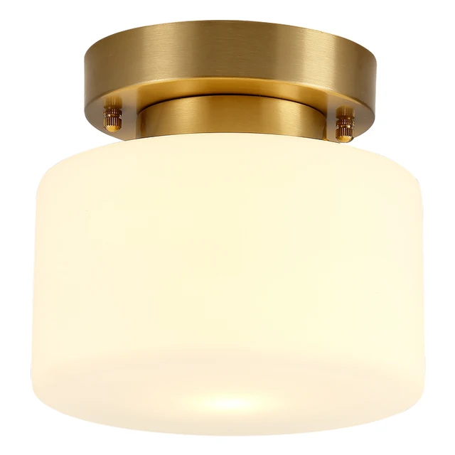 American style Real brass Ceiling lamp Creative corridor aisle ceiling light white frosted glass shade Lamps and lanterns E27