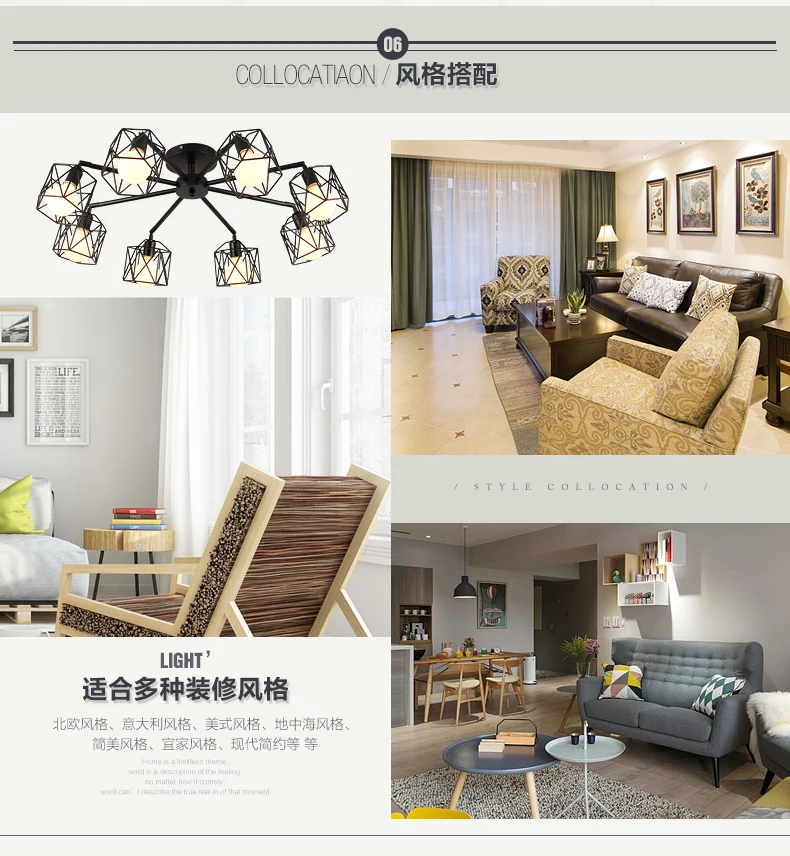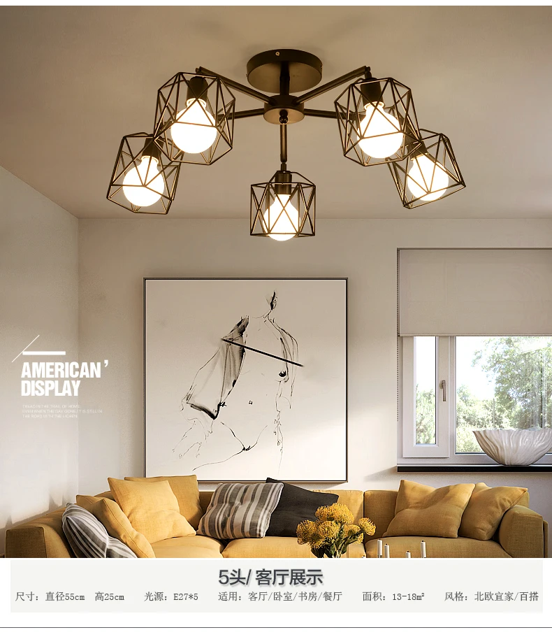 Hot Item Nordic pastoral LED twig ceiling light living room illumination Glass bedroom fixtures Iron art Energy saving lamps