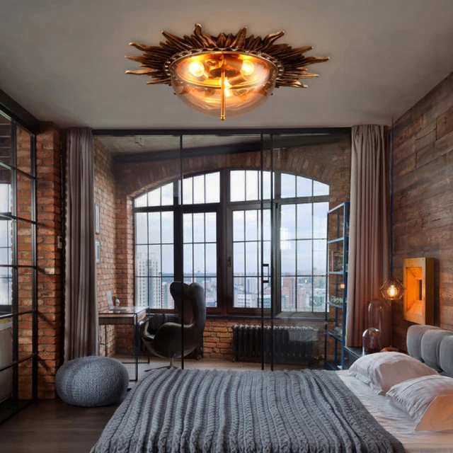 Lowered led e27 Vintage Athena Sun Resin Glass Iron LED Lamp.LED Light.Ceiling Lights.LED Ceiling Light.Ceiling Lamp For Foyer Bedroom
