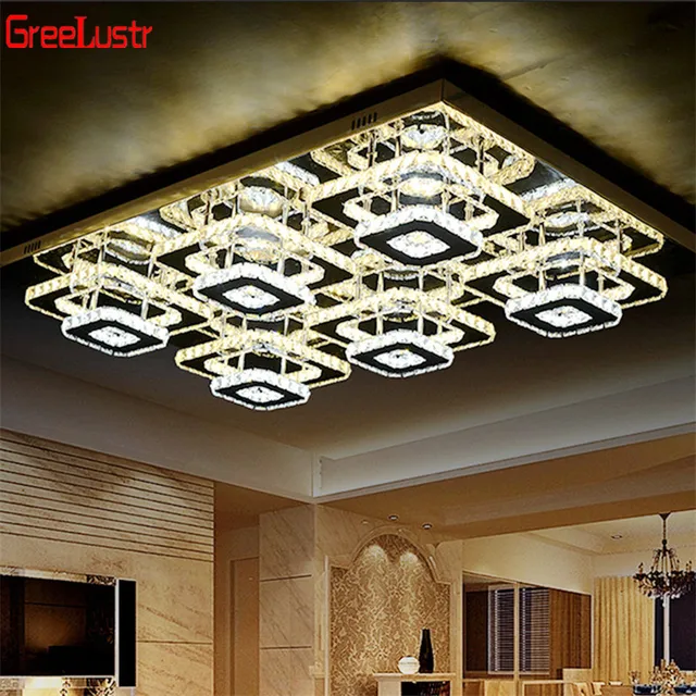 Closeout Modern K9 Crystal Ceiling Lights Rectangle Plafonnier Stainless Steel LED Lustres for Living Room Chandelier Ceiling Fixtures