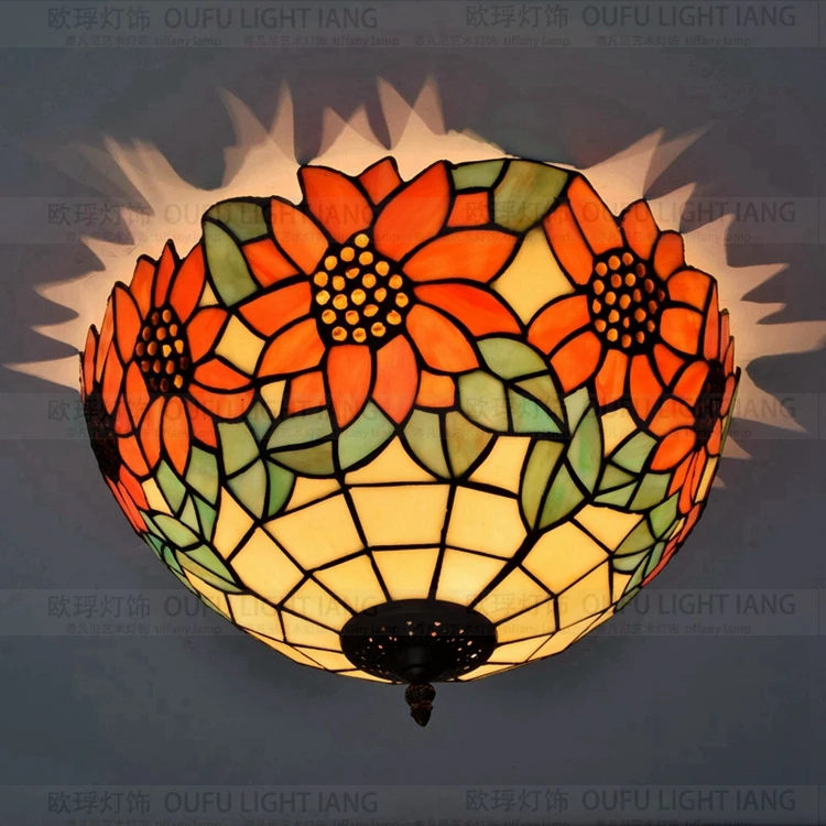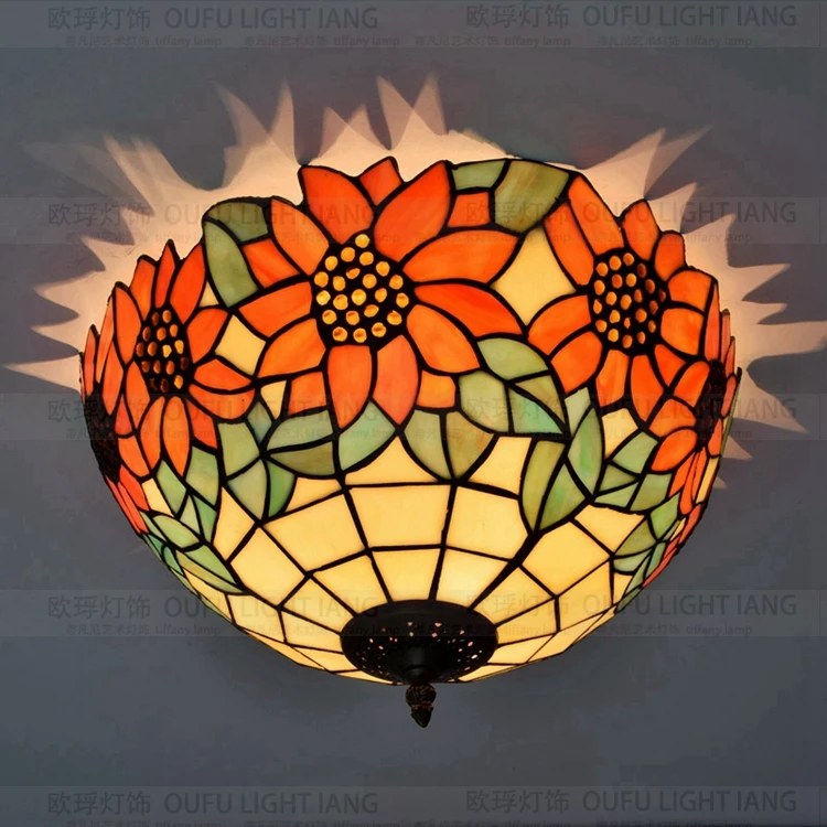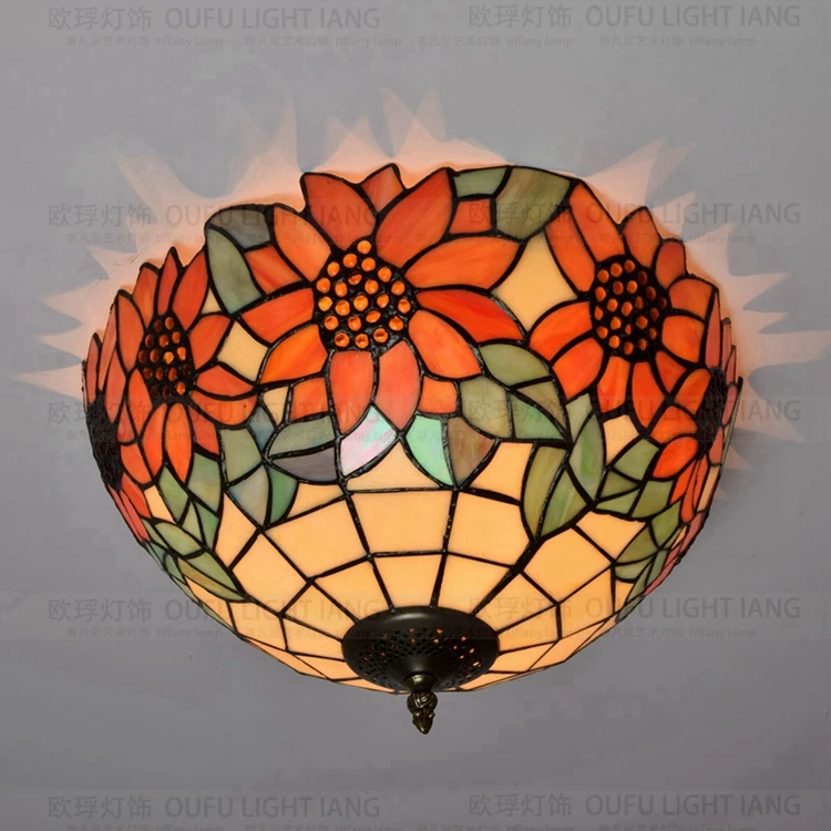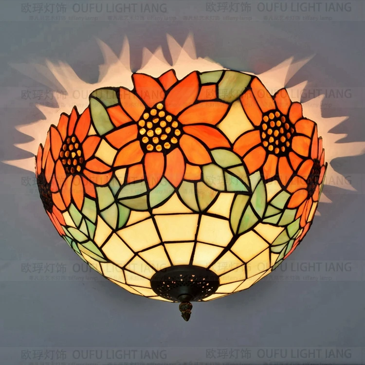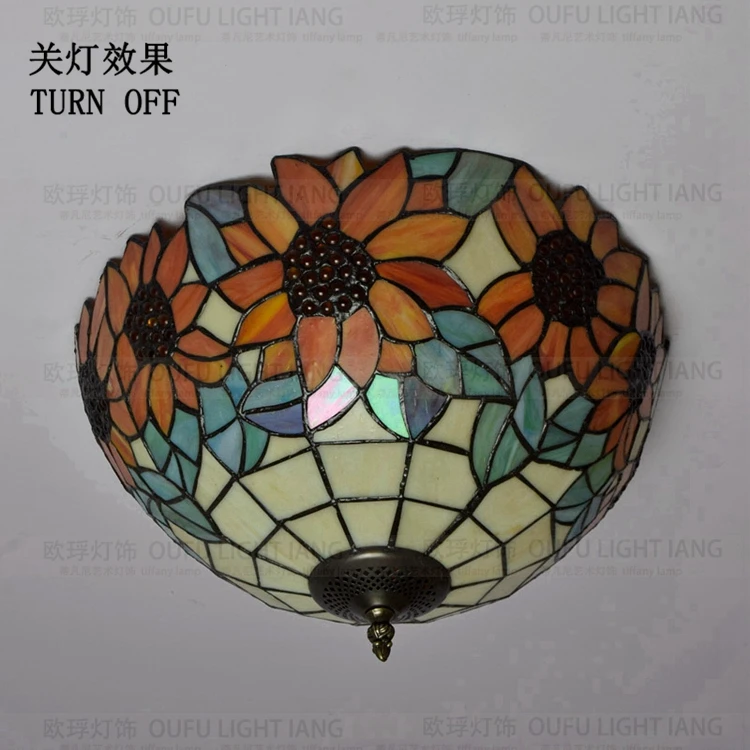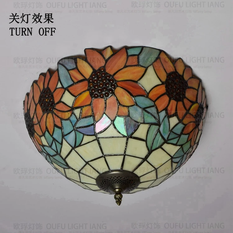 Best Buy 16 Inch Flesh Country sunFlowers Tiffany ceiling light Stained Glass Lamp for Bedroom E27 110-240V