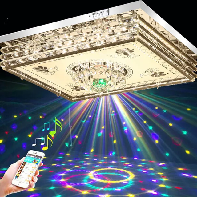 On Sale New Crystal Lights Living Room Lights Rectangular Hall LED Ceiling Light MP3 Bluetooth Bedroom Lights Colorful Music LED lamps