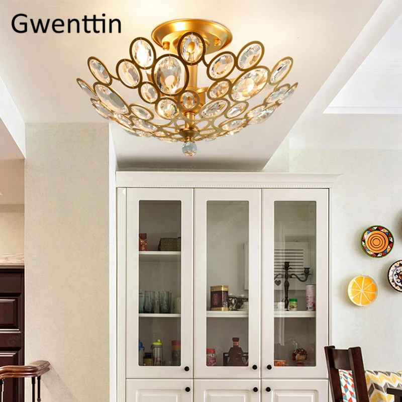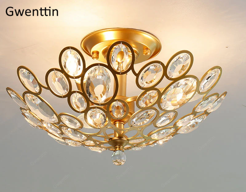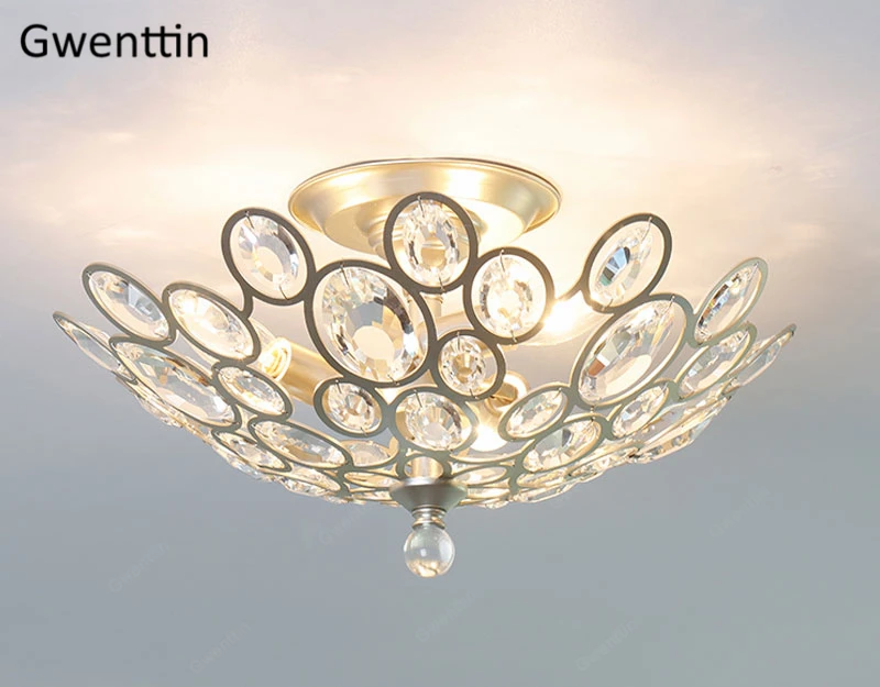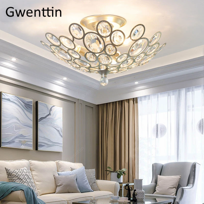 Buy Luxury Crystal Ceiling Lamp Silver Gold Iron Led Ceiling Light for Living Room Bedroom Lamps Home Art Deco Lighting Fixtures