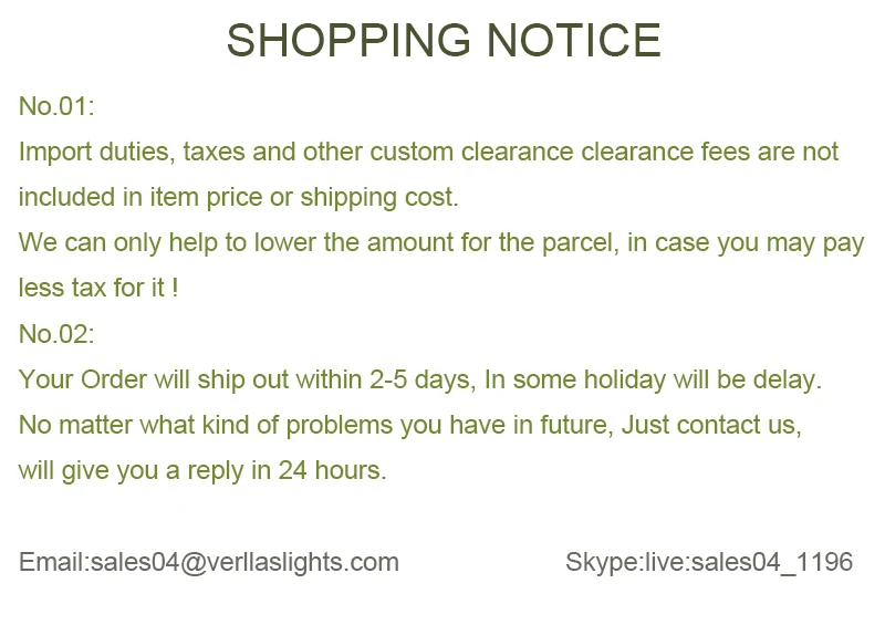 4. Pls DO NOT open dispute or write a bad or neutral review directly without any contacting. You have our words here: All problems can be solved by a good communication, we hope all of our client can satisfied with our products and service. If you have any problems about our products or service, please contact us first and we will give you a perfect solution.